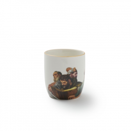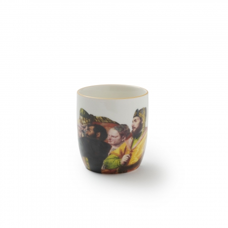 Este vaso reproduce un detalle de la obra de Paolo Veronese La disputa con los doctores en el templo (h. 1560), de la colección del Museo Nacional del Prado.
